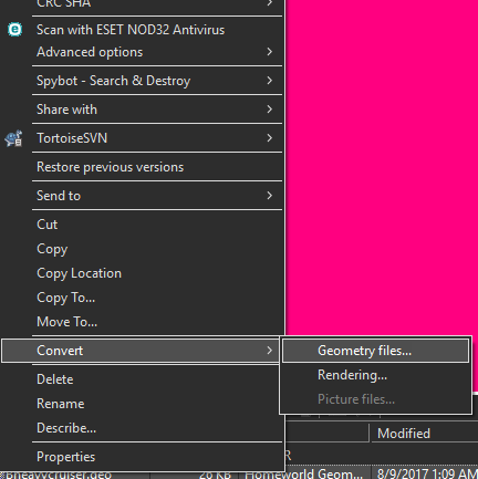 Once the model is loaded, you can right click on the .GEO file in the list on the bottom of the window, and select "Convert".